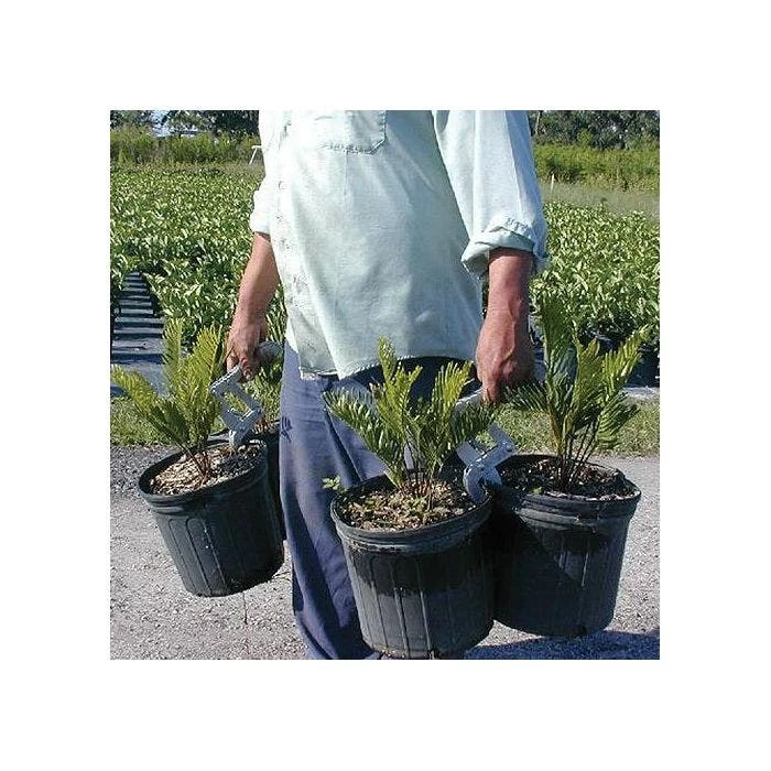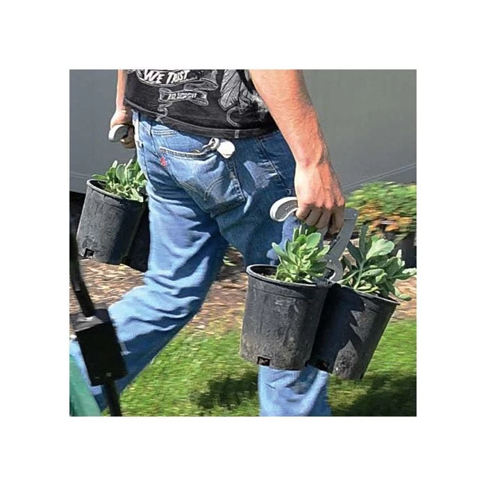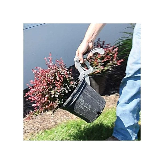Use while loading, unloading, lifting or dragging pots. Increases employee comfort due to reduced strain to finger joints and hands. Since the Can-Handlers grip onto the container rim, (unlike moving by the plant), you may see a reduction in plant damage as well. Rustproof cast aluminum. Priced each.Small for 1 gallon pots.