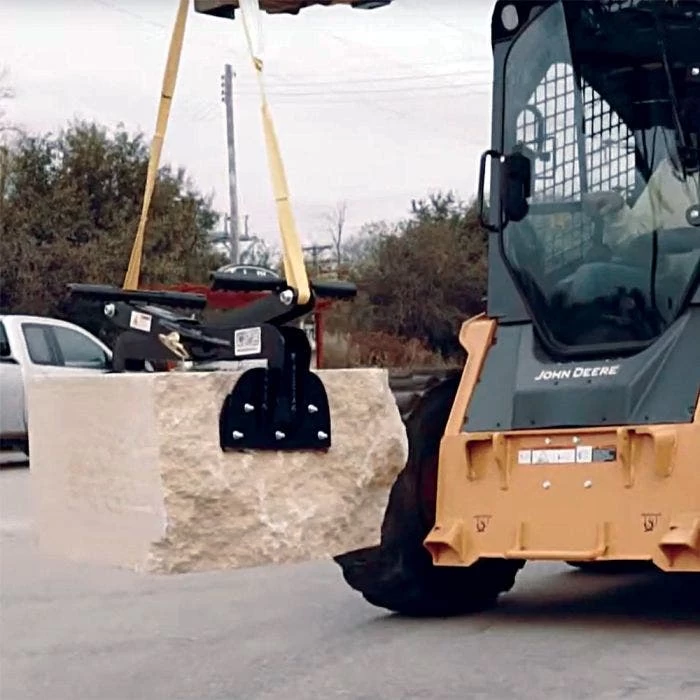 CMP Attachments and Rock Hard Landscaping make these lift-driven welded clamps in 3 adjustable sizes. They easily attach to your excavator or skid loader via a clevis. The clamping surfaces feature rubber pads. These pads provide additional grip and protect the material underneath. Each lift also includes a heavy-duty attachment strap. For replacement straps, click HERE. CMP Attachments and Rock Hard Landscaping both call Minnesota home. They manufacture and assemble these step lifts in the USA. They engineer each product with unparalleled quality and design. CMP Attachments and Rock Hard Landscaping designed these lifts to handle all your step placement needs. See below for buying options.