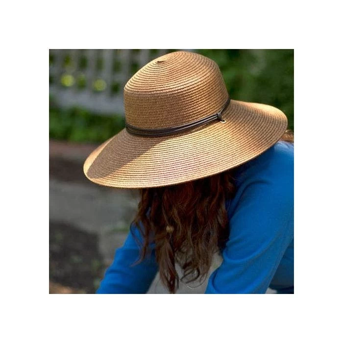 Who would ever guess that these braided hats offer high tech sun coverage in such a classic form! UPF 50+ rated for maximum protection. Scrunches into a tote bag for the beach and bounces right back into shape. Hats are wide brimmed, for added face and neck protection. Soft elastic headband fits most women comfortably. Adjustable wind lanyard keeps it in place as you work.