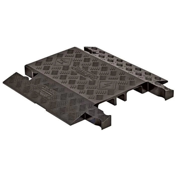 These Guard Dog® Drop Over Cable and Hose Protectors feature a durable UV-stabilized polyurethane construction. Each drop over measures 18 inches long, 19-3/4 inches wide, and 1-7/8 inches tall. They feature two extra-wide 3-3/16-inch outer channels and a narrower 1-5/8-inch inner channel. Each channel measures 1-5/16 inches tall and supports loads up to 21,000 pounds per axle! Choose your desired color below. Guard Dog® Cable and Hose Protectors are ideal for providing a safe crossing for vehicles and pedestrians. They are great for greenhouse growing, field production, worksite safety, and public works application. The outer channel width makes them perfect for protecting most 5/8 and 3/4-inch hoses. Use the smaller inner channel for extension cords or other cables. Guard Dog’s® patented 5-bar tread surface maximizes traction to prevent slips or trips. A unique dog bone style connector allows you to link multiple protectors with ease. These protectors are extremely fast and easy to install thanks to their drop-over design. Guard Dog® uses high-quality, UV-stabilized polyurethane for maximum durability and weather resistance. A small profile and low weight allow you to stack them for easy storage. Note: Drop-Overs protect your cords, cables, and hoses from above. They do not protect from abrasion caused from below.
