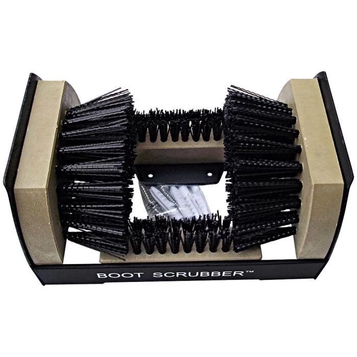- Strong bristle brushes clean mud and snow off boots and shoes