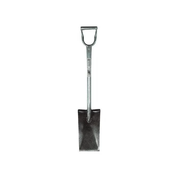 Rugged all steel design, for the best combination of lightweight and longevity. This professional grade spade features smooth, zinc-plated rust-resistant finish. No rivets, sharp edges or wood to damage hands. Aircraft quality alloy tubing construction turned steps, and heavy gauge steel blade. Extended blade for balling and root pruning. 13″ blade tapers from 7 3/4″ to 6 1/2″. WARNING All Steel shovels and spades should not be used in areas where underground electric lines, wires or cables may be present.