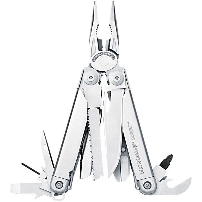 Top grade stainless steel, ingenious design, and rigorous tolerances ensure the best quality utility tools, plus they are backed by a 25-year guarantee. All models listed feature easy-to-use locking blades. A premium leather case keeps it at your side, ready when you need it. Review the feature chart to select the best model for your needs. These tools are powerhouse-built, making them the toughest of the Leathermans.