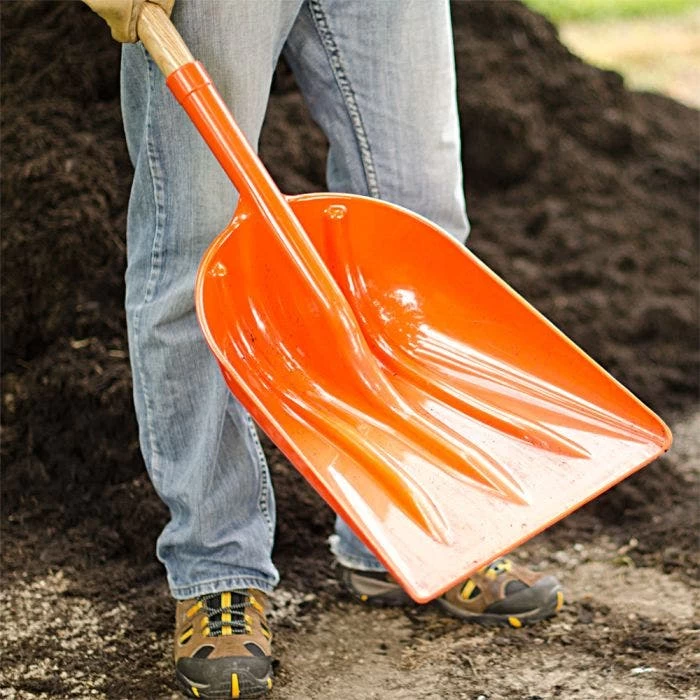 The #12 size blade quickly moves large volumes of mulch, seeds, grains, fertilizers and similar materials, while also being very useful for cleanup and snow removal. 14-1/2″ wide blade with American Ash long handle. 63″ overall length. Wt 3.95 lb.