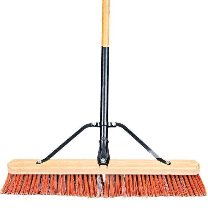 A slotted, bolt-through connection and powder-coated steel braces provide a secure connection. Choose your desired block width below. Leonard Fine-Bristle Push Brooms are perfect for smooth surfaces. They work very well for sweeping dust, dirt, and other debris.