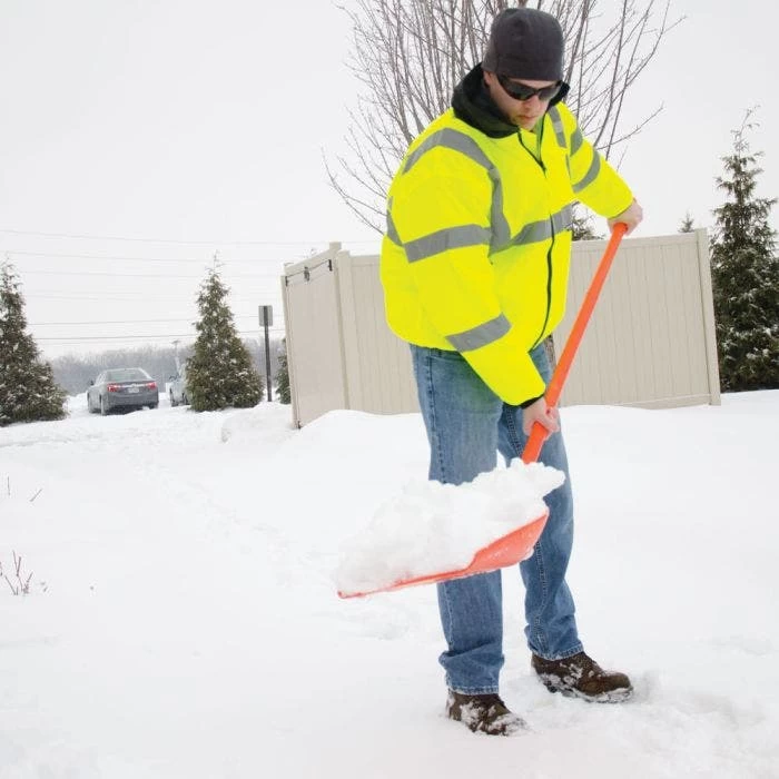 The Leonard Poly Scoop Shovel is safe to use on any surface and its non-stick surface is great for snow removal, scooping mulch, and even gravel.