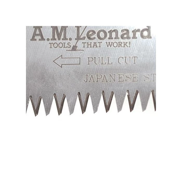 This replacement blade for the A700- Leonard Tri-edge Folding Pruning Saw has tri-edge teeth with sharp edges that cut quickly and cleanly. The high carbon Japanese steel blade delivers strength and sharpness while it is taper ground for efficient cutting performance. 7-inch blade length designed with slight curve and 7 point teeth for pruning of all types. Blade finished with hard-chrome plating for rust resistance.