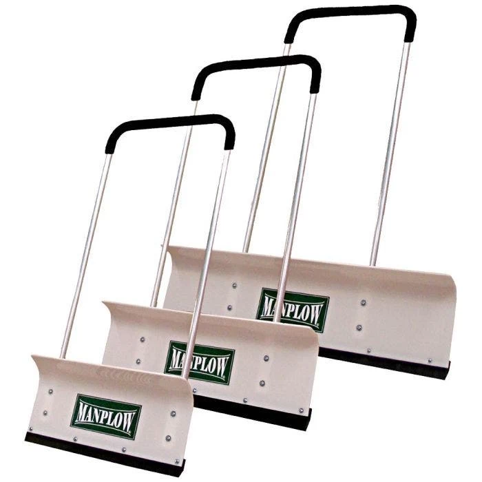 The PRO is an extra-wide snow pusher designed to make short work of even the heaviest snow falls. The PRO Line features a lightweight aluminum with Comfort Grip, U handle and the patented EZ Glide Edge. The EZ Glide Edge is durable enough to clear snow from aggregate, broken concrete or gravel surfaces but will not scratch or gouge wood or composite decking material like a steel edge will. The EZ Glide Edge?s wide bottom edge allows the MANPLOW to skim deep snow in manageable horizontal layers. MANPLOW?s are designed to be DURABLE. You can expect your MANPLOW to triumph over Mother Nature season after season. MANPLOW PRO models feature a replaceable EZ Glide Edge; expect 300-350 shoveling hours before needing to be replaced. MADE IN THE USA!