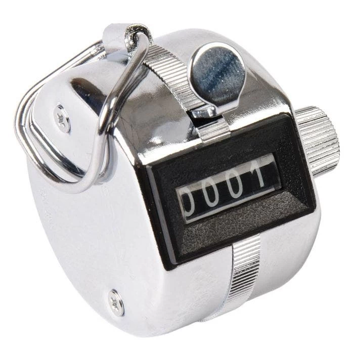 Chrome case and finger loop for comfort and security. Counts to 9999.