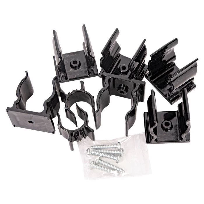The same heavy duty composite tool clips now available in a wall mountable version. Quickly and easily organize your workshop or tool shed. These UV-treated tool clips fit nearly all professional-grade long-handled and D-grip tools. Use to hang or store any object with a diameter of 7/8 to 1-5/8 inches. These simple, low profile clips will help make the most out of any storage space. *Sold in packs of 6 clips with two inner clips for smaller diameter handles. This versatile clip includes an insert for smaller diameter handles. Multi-purpose philips head fasteners are provided . Ship wt. 0.8lb.