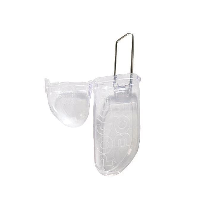 - Clear plastic flip-lock carrying case with belt clip is included