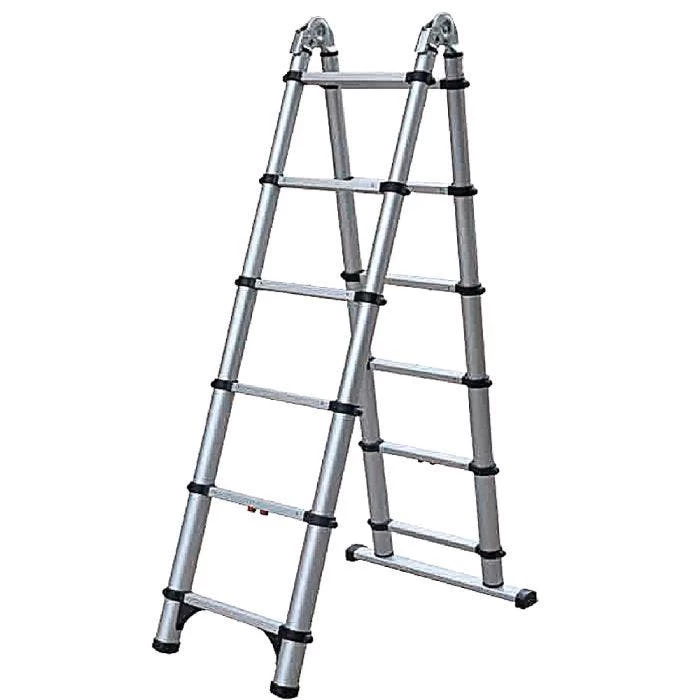 This Telesteps ladder combines a 6-foot stepladder and a 12-foot extension ladder in one package. This ladder features a high-quality aircraft-grade aluminum alloy construction. A fully automatic extension and one-touch release mechanism make extension and retraction fast and easy. The steps lock from the bottom up and each step has a safety indicator.