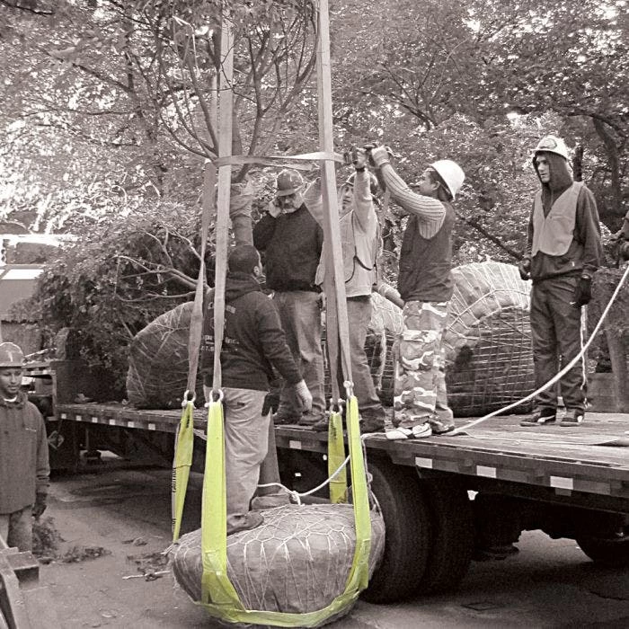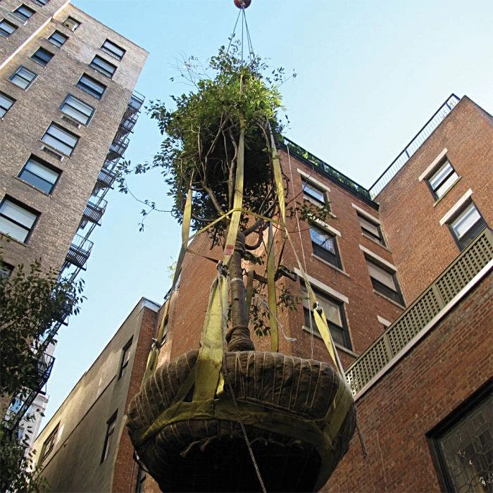 The Tree Tote Plant Lift Sling is a self-adjusting nylon sling designed to help effortlessly move heavy plant material.