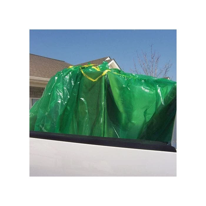 Some of the many advantages of using the BedBag include its low cost, compactness, portability, and easy usage. The BedBag can be stored in a truck cab for those unforeseen times its use is needed. It is already assembled and can be placed on a truck in less than 2 minutes. One pull of the drawstring and it and its contents can be thrown away. Landscapers can use the BedBag for transporting mulch, by pulling the drawstring they will prevent mulch from blowing out during transport and prevent staining of spray on type liners. The BedBag also offers limited protection for your load from minor weather elements if the drawstring is pulled shut. Additionally, the BedBag reduces scratches, keeps the load clean, ensures quick clean-up, and improves resale of your truck.