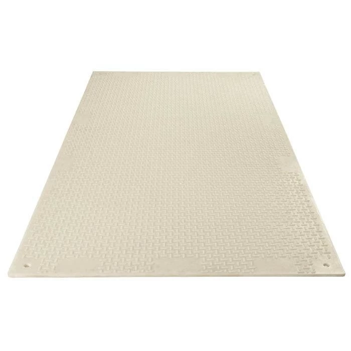 The mats are made of 100% recycled high density polyethylene (HDPE) construction that is chemical and oil-resistant.