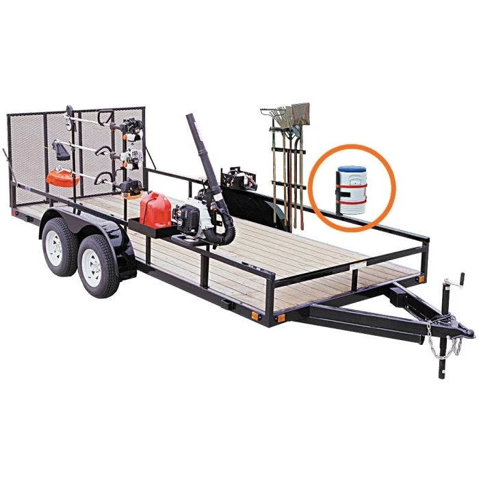 Handy powder-coated steel water cooler rack with mounting hardware for open or enclosed trailers!